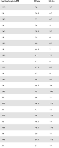 Not sure about the right size? No problem! Use the size chart as a guideline for choosing the right shoe size. The best time to measure your feet is at the end of the day where your feet will swell slightly during the day due to heat and movement.